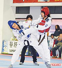 【陳國偉╱桃園報導】昨在桃園國立體育大學,進行第1屆新加坡青年奧運跆拳道國手決選,選出男、女各3量級共6名國手,將先參加