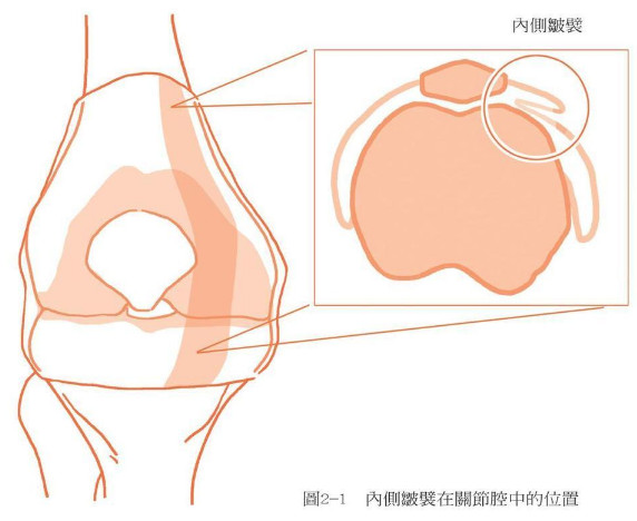 內側摩擦症候群內側皺襞在關節腔中的位置 圖/摘自時報出版《自己的膝蓋自己救》