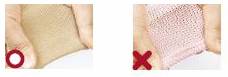可將針織護具用雙手拉開,如針織密度較高,表示能提供的固定能力較夠,若針織密度低,則容易變形,不耐久用。