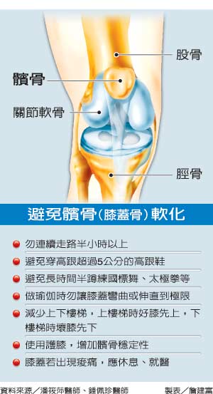 醫師還指出,髕骨軟化症好發於女性朋友,尤其是30~40歲間的女性,發生率更高達五成。且女性朋友穿著高跟鞋上下樓梯時,髕骨承受體重7~9倍重力,因此減少髕骨受傷還是少穿高跟鞋為妙。