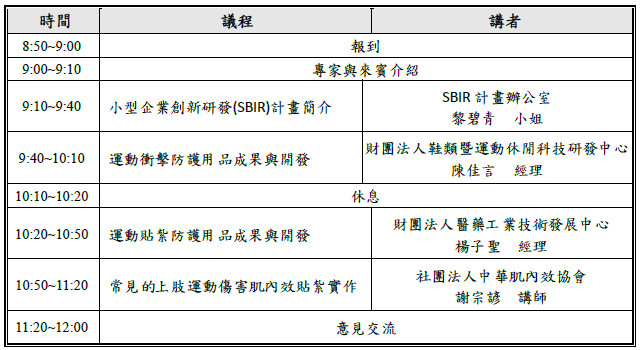 三、協辦單位:傳統產業創新聯盟(AITI)、SBIR 計畫辦公室、財團法人鞋類暨運動休閒科技研發中心、社團法人中華肌內效協會