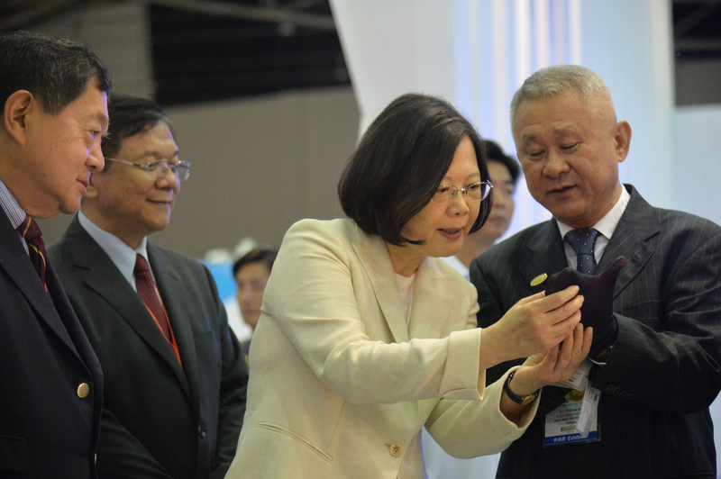 蔡英文強調,目前全球最好的機能布都是台灣生產,從2014年世足賽和2016里約奧運多個國家隊的運動服飾,布料都來自台灣,為國家創造大量外匯。國際間的挑戰沒有減少,加入跨太平洋夥伴協定(TPP)、區域全面經濟夥伴協定(RCEP)、自由貿易協定(FTA)等區域整合,以及政府的新南向政策,都會支持台灣的紡織業和機械業等加強國際行銷。