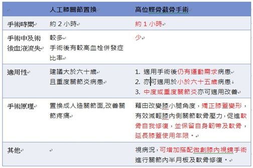 1. 中度或重度膝關節炎經保守治療效果不彰之病人:尤其是中度膝關節炎病患又未達更換人工膝關節標準之病患。